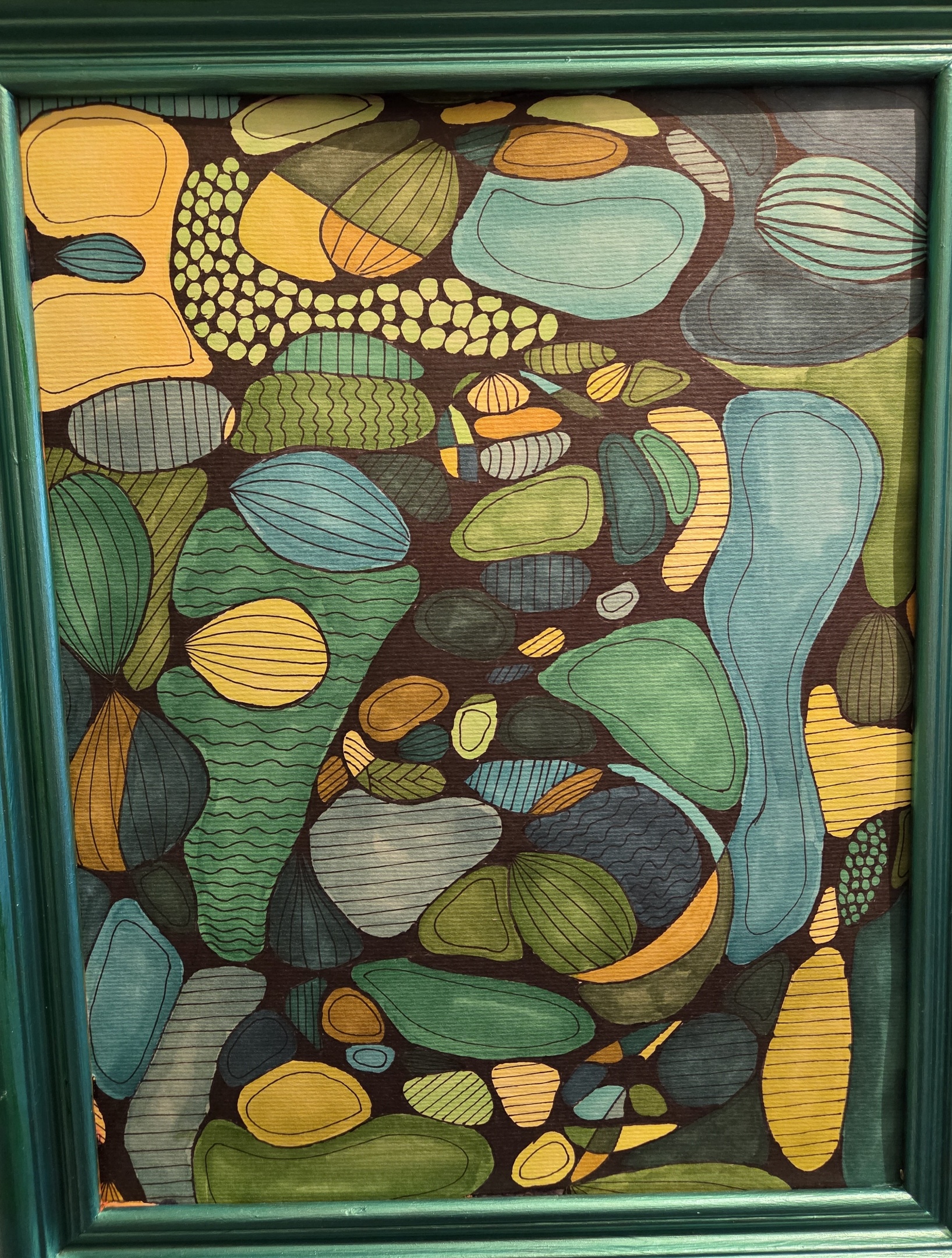 Att bara låta penna rita av sig själv är kul. Det blir lite meditativt. Sedan målar jag på med de färger jag vill. Dessa går att få från A5 - A3.